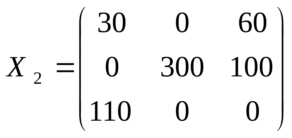 L(X)min = 902 + 304 + 3001 + 705 + 1103 = 1280 ден. ед.