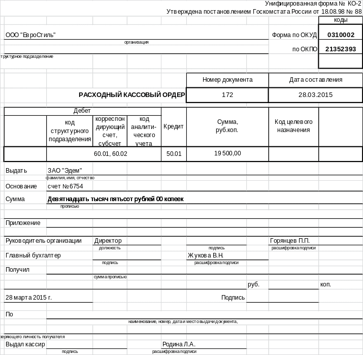 - •Назначение журнала регистрации приходных и расходных кассовых ордеров.