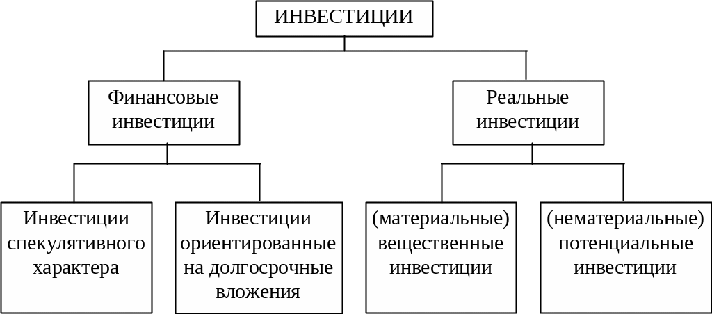Рис. 3.1: Виды инвестиций по критерию «объект инвестиций».