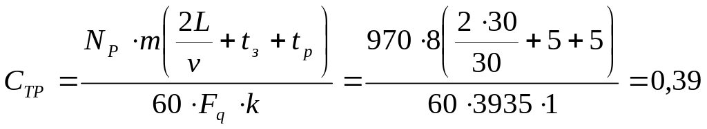 tз, tр – час завантаження і розвантаження крана, 5...8 хв; Приймаємо tз = 5 tр = 5