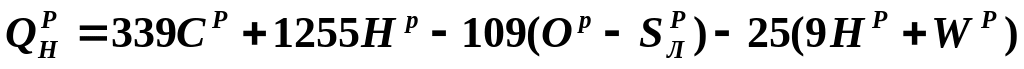 - •Определение элементарного состава рабочей массы топлива. По формулам перерасчета с горючей массы на рабочую определяем элементарный состав рабочей массы при заданном балласте.