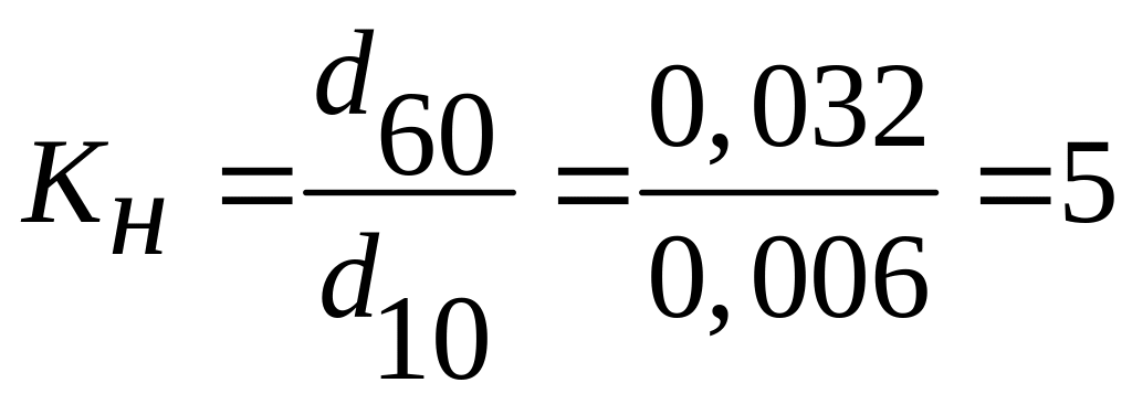 Коэффициент неоднородности (Кн) представляет собой отношение величины контролирующего диаметра частиц (d60) к величине действующего их диаметра (d10):