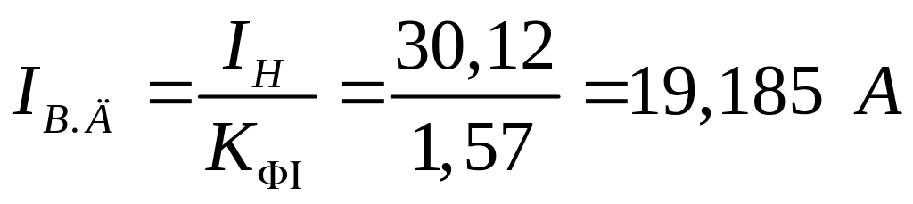 В соответствии с данными двигателя можно рассчитать номинальный ток нагрузки и среднее и действующее значение тока через вентили. Номинальный ток нагрузки рассчитывается исходя из выражения: