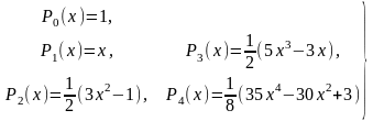 Формула (1.4) является рекуррентной формулой задания полиномов Лежандра, с помощью которой удобно находить последовательные полиномы Лежандра.