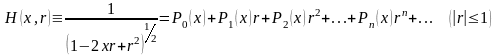 Существует много способов определения полиномов Лежандра. Один из них мы уже рассмотрели – задание полиномов формулой Родрига. Теперь рассмотрим еще один немаловажный способ задания полиномов – с помощью рекуррентной формулы. Для этого обратимся к так называемой производящей функции /1/:
