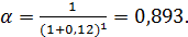 мұндағы α –уақыт факторын ескеретін дисконттау коэффициенті: