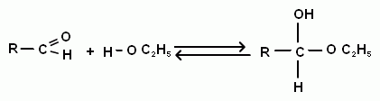 Очень важной является реакция присоединения спиртов к альдегидам. При этом образуются полуацетали, а потом они при взаимодействии со спиртами превращаются в ацетали (но это уже реакция нуклеофильного замещения).