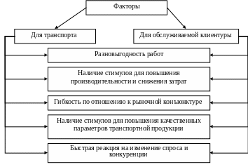 Обобщая практику построения цен на различных видах транспорта, можно схематично охарактеризовать факторы, на основании которых можно судить об эффективности построения тарифов на услугу (рис. 6).