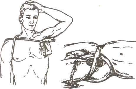Наложение жгута при кровотечении из подмышечной артерии из бедренной артерии.
