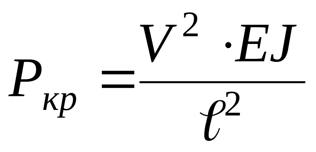Найдём значение критической силы по формуле Эйлера: (в формулу подставляем длину того стержня, который брали за единицу измерения)