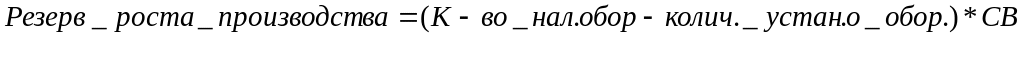 Разность между количеством наличного и установленного оборудования, умноженная на плановую среднегодовую выработку продукции на единицу оборудования, - это потенциальный резерв увеличения производства продукции за счет увеличения количества действующего оборудования.