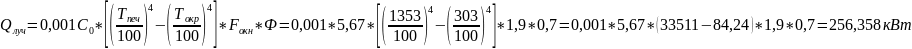 Где η – пирометрический коэффициент 0,8 рекомендованный для методических печей.