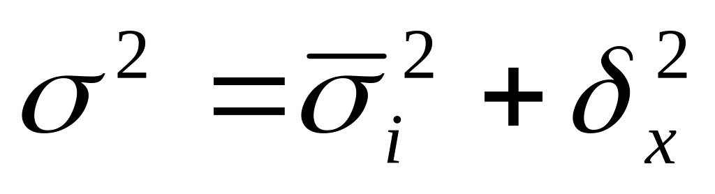 Общая дисперсия измеряет вариацию признака во всей совокупности под влиянием всех факторов, обуславливающих эту вариацию. σ 2=