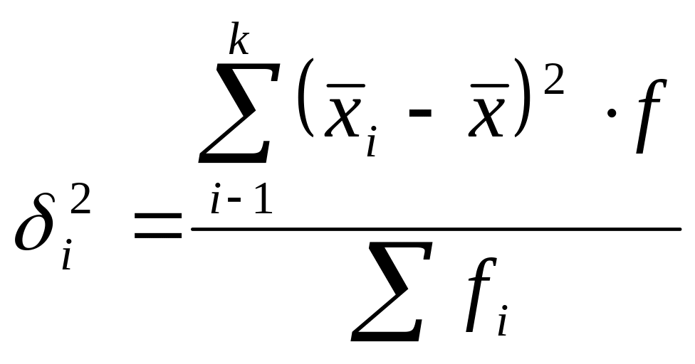 Внутригрупповая дисперсия – отражает случайную вариацию, возникающую под действием других, неучиваемых факторов и не зависит от признака фактора положенного в основание группировки. Она исчисляется следующим образом: