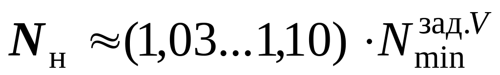 Номінальну потужність двигуна у даній роботі рекомендується обирати з інтервалу, крайні значення якого визначають за виразом: