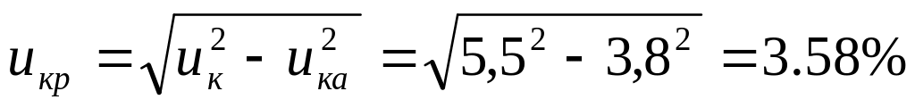 относительное напряжение короткого замыкания Uк = 5,2 % .