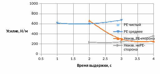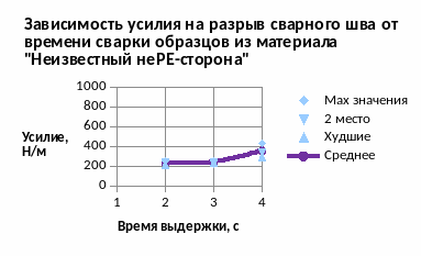 Рис.3. Зависимость усилия на разрыв сварного шва от времени сварки образцов из материала «Неизвестный неРЕ-сторона».