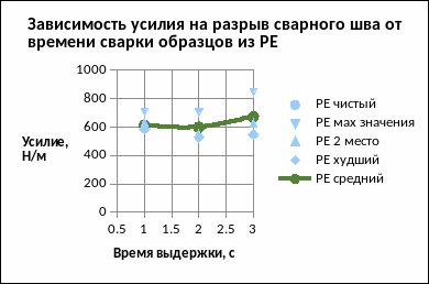 Рис.1. Зависимость усилия на разрыв сварного шва от времени сварки образцов из РЕ.
