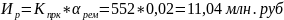 доля издержек на ремонт от капиталовложений