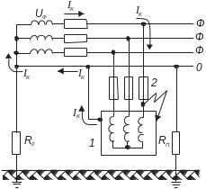 Принцип действия: превращение замыкания на корпус из-за пробоя изоляции в однофазное короткое замыкание в результате чего сработает защитный элемент – предохранитель или автоматический выключатель и размыкает поврежденную фазу.