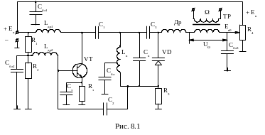 Схема автогенератора с управляемым варикапом приведена на рис. 8.1.