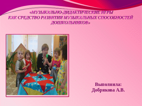 Цель: развивать у детей дошкольного возраста 6-7 лет музыкально-слуховые представления.