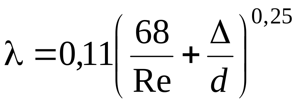 А.Д. Альтшуль предложил для определения универсальную формулу, применяемую во всех областях турбулентного режима,