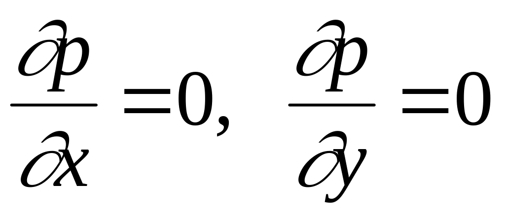 Будем полагать, что из массовых сил действуют только силы тяжести. Тогда составляющие массовой силы в направлении осей х и y равны нулю, т.е.