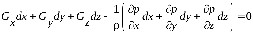 Так как гидростатическое давление является лишь функцией координат точек х, y, z (1.24), то левая часть уравнения (1.30) представляет собой полный дифференциал и может быть обозначена через dp, т.е.