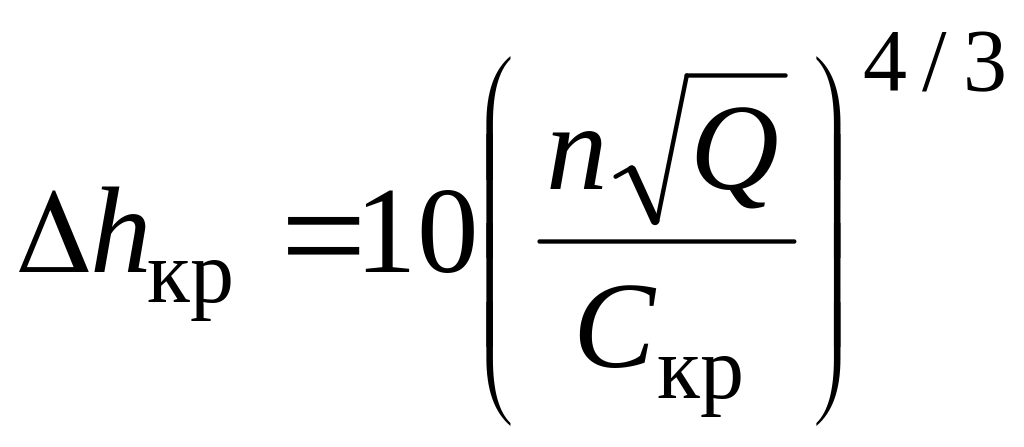 Величина hкр зависит от типа и конструкции насоса и устанавливается экспериментально. Условились за величину hкр принимать тот кавитационный запас, при котором снижение напора насоса при его кавитационном испытании достигает 2 % номинального, т.е. при отсутствии явления кавитации. На основании обобщения опытных данных С.С. Рудневым получена формула для определения критического кавитационного запаса центробежных насосов: