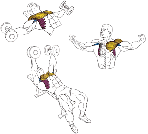 Разведение гантелей лежа 4 подхода по 15 повторений