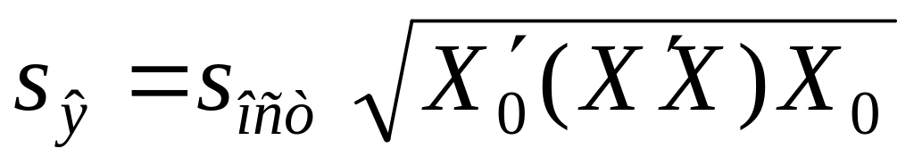 где ŷ0 – групповая средняя, определяемая по уравнению регрессии (3.4) при заданных значениях объясняющих переменных x1 = x10, x2 = x20, ..., xp = xp0;