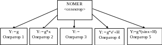 В зависимости от значения селектора NOMER значение функции У вычисляется по одной из перечисленных формул. Схематическое представление оператора CASE – структура отбора, представлена для данного примера на рис.4.