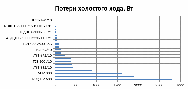 Рисунок 7- Гистограммы потерь холостого хода в зависимости от типа трансформаторов.