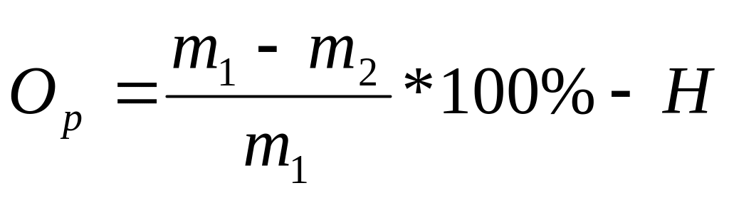 Величину втрат при прожарюванні визначаюгь за формулою: