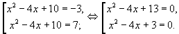 Первое уравнение совокупности не имеет решений, так как его дискриминант отрицателен.