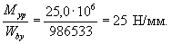 Проверяем условие (5.84) с учетом момента Мур. При этом пренебрегаем в «запас» уменьшением продавливающей силы F за счет нагрузки, расположенной на участке с размерами (а + h0)(b + h0) вокруг колонны