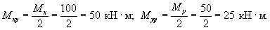 Моменты в сечениях колонн по верхней и по нижней граням плиты равны: в направлении размера колонны 500 мм - Мх = 100 кН·м, в направлении размера 800 мм - Мy = 50 кН·м.