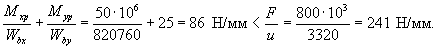 При этом согласно п. 5.32 предельное усилие, воспринимаемое поперечной арматурой и равное 0,8 qsw и = 0,8·144 и = 115и, должно быть не менее 0,25Fb = 0,25 Fb Rbtnt h0 и = 0,25·180u = 45u. Как видим, это требование выполнимо.