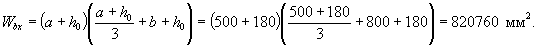 Определим геометрические характеристики контура расчетного поперечного сечения: периметр и =2 (а + b + 2h0) = 2(500 + 800 + 2·180) = 3320 мм.