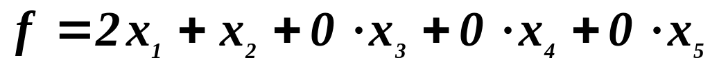 При этом, чтобы целевая функция не изменилась, коэффициенты перед дополнительными переменными полагаем равными нулю: