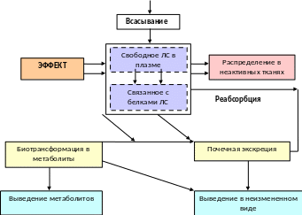 Рисунок 1. Фармакокинетические процессы лекарственных средств в организме