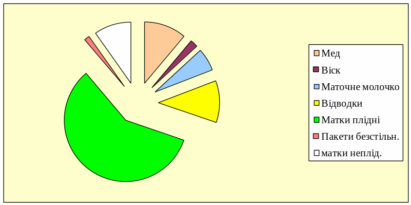 - •Виробництво товарної продукції та виручка від її реалізації (на бджолофермі з 100 сімей)