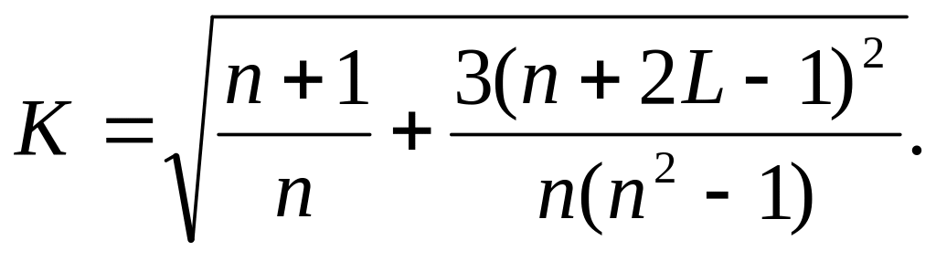 Значение комплекса K (рисунок 5) зависит от периода основания прогноза Т (п) и периода упреждения прогноза L: увеличение периода основания прогноза Т (п) и уменьшение периода упреждения прогноза приводят к уменьшению комплекса K, а следовательно, к уменьшению величины доверительного интервала.