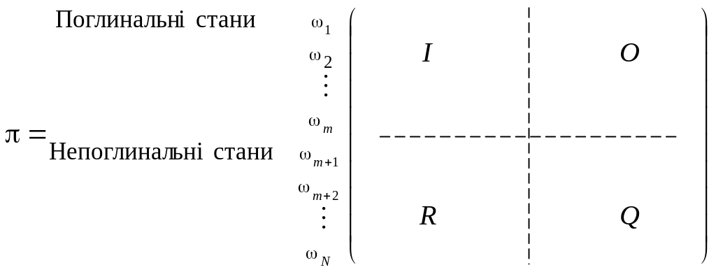 π описує поглинальний ланцюг Маркова
