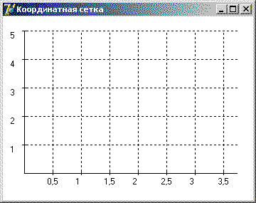 Довольно часто результаты расчетов удобно представить в виде графика. Для большей информативности и наглядности графики изображают на фоне координатных осей и оцифрованной сетки. В листинге 10.2 приведен текст программы, которая на поверхность формы выводит координатные оси и оцифрованную сетку (рис. 10.4).