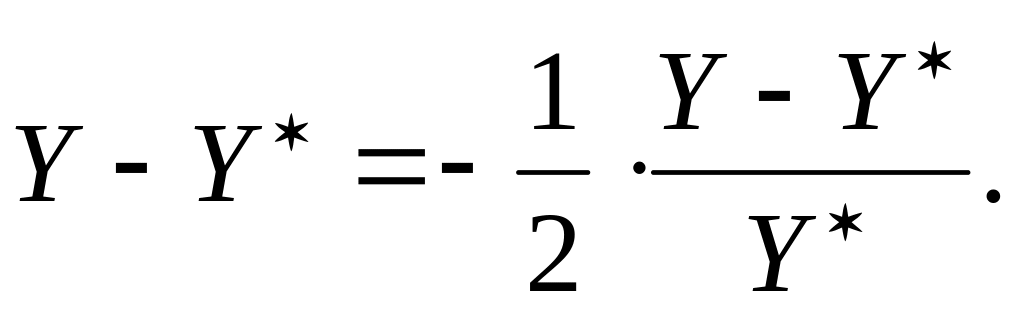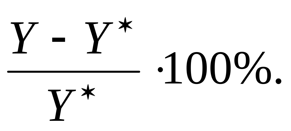 Отклонение фактического ВНП от потенциального рассчитывается как процентное отношение разности между фактическим объемом ВНП (Y) и объемом потенциального ВНП (Y*) к величине потенциального ВНП:
