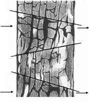 Последовательно уменьшающаяся глубина обугливания бревна, деревянной стенки по их длине - это сплошные затухающие поражения (рис.5.5б.).