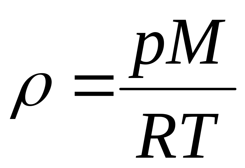 where V is the total volume of n moles of gas at temperature, T, and pressure, p. Since n is the mass of gas divided by molecular weight, the equation can be written as