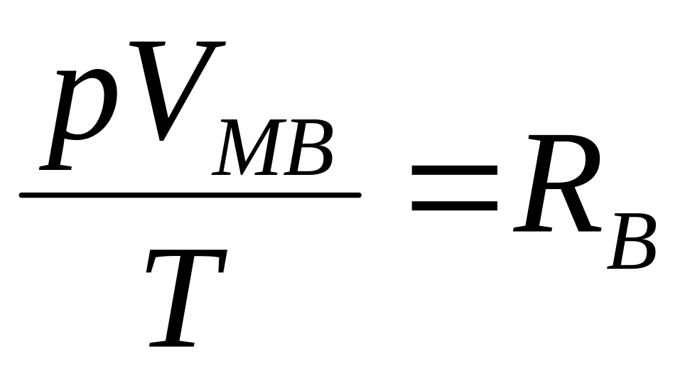 Where VMA represents the volume of one molecular weight of gas A and VMB represents the volume of one molecular weight of gas B, both at pressure, p, and temperature T. This implies that